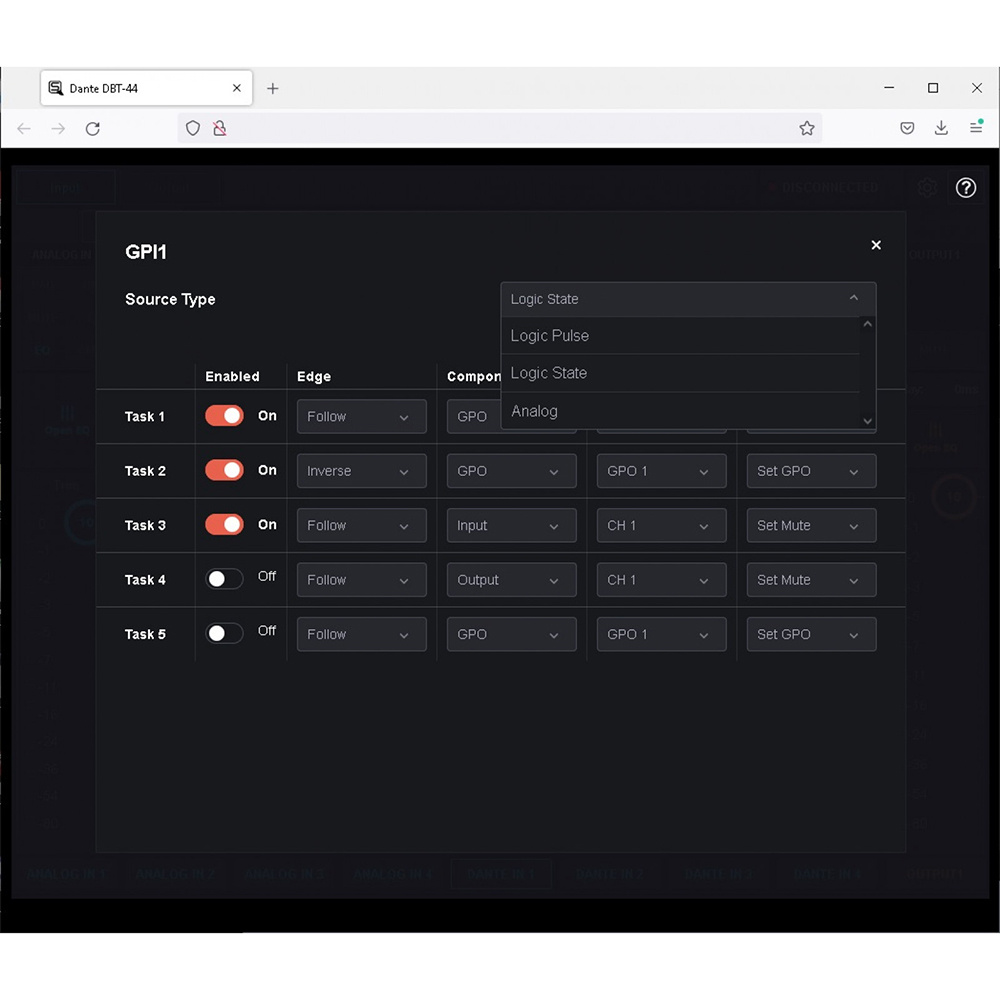 Specificaties Synq DBI-44 Analoge, Dante netwerkaudiobrug met AES67:
