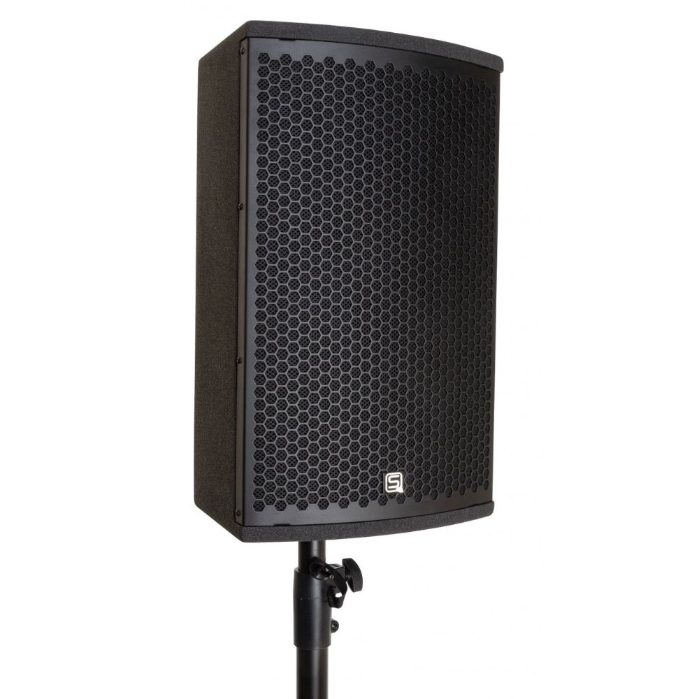 De Synq SA-10 is gebouwd voor dagelijks gebruik, met een heavy-duty polypropyleen behuizing die tegen een stootje kan. Dankzij de 35 mm statiefadapter, M8-ophijspunten, monitorsteunen en rubberen voetjes plaats je de Synq SA-10 moeiteloos als topkast, vloermonitor of in een vaste installatie. De stevige draaghendel maakt transport snel en veilig.