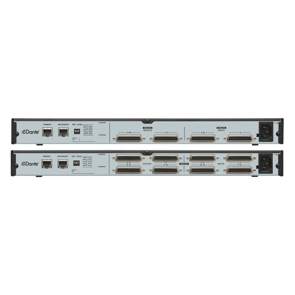 - Analoog-Dante-Analoog converter voor 16 (ML-16D) of 32 (ML-32D) lijnniveau audiokanalen