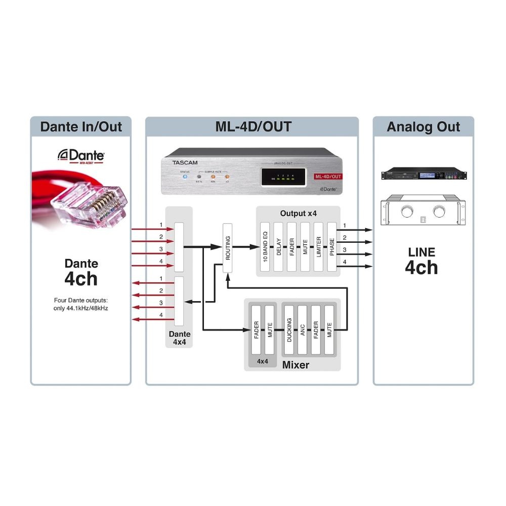 Kenmerken Tascam ML-4D/OUT-X 4-kanaals Dante converter: